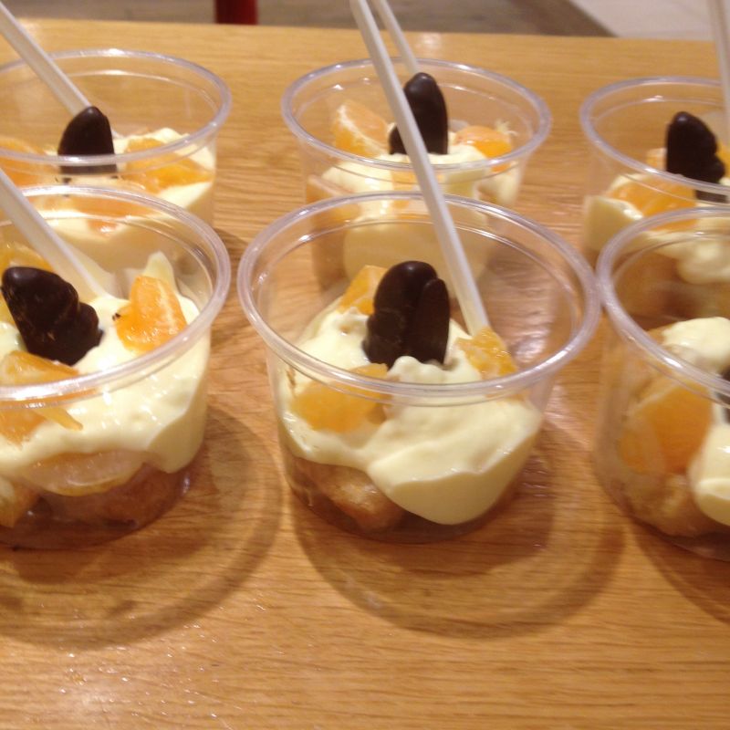 *Leg hierop wat partjes mandarijn en schep hierop het mascarponemengsel